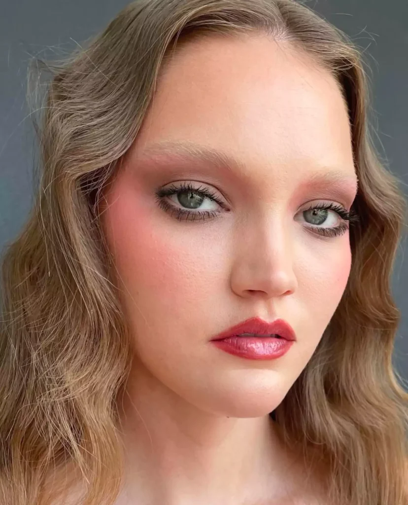 Give your cheeks a healthy, rosy flush by applying generous blush across the apples of your cheeks and blending upward toward your brow bone. Pair it with a soft pink lip and lightly smudged eye makeup for a look that feels youthful, warm, and perfect for winter days — even outside of Valentine’s Day.