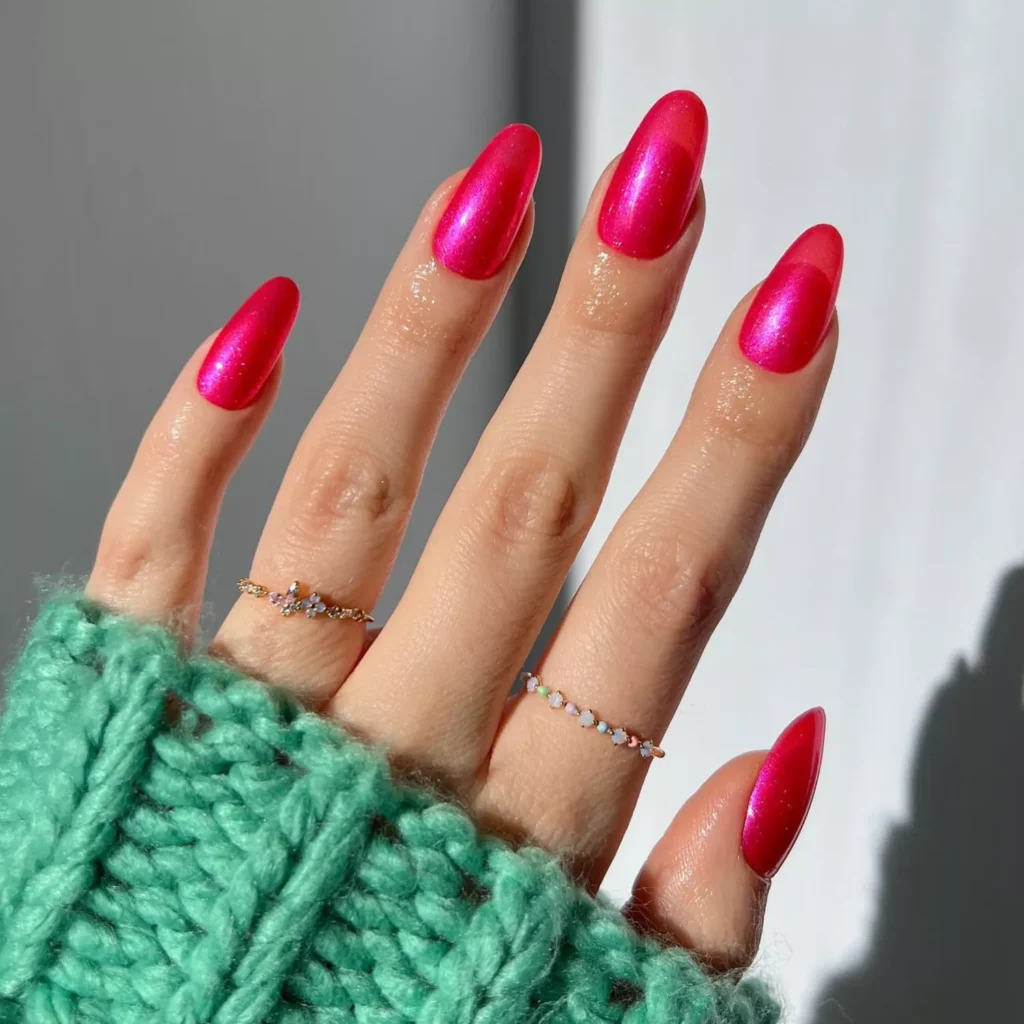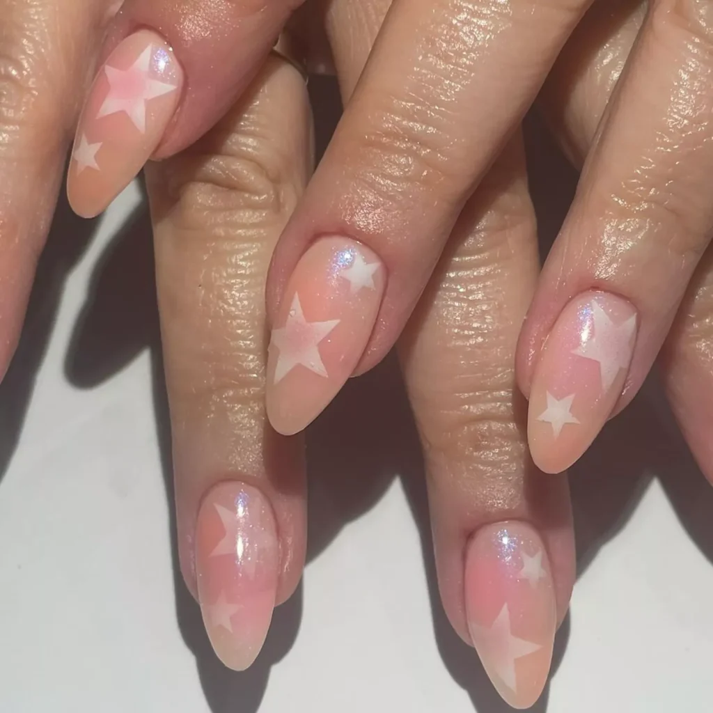 For anyone craving sparkle, gel nails layered with fine glitter or sheer shimmer can be both festive and sophisticated. This works especially well on light bases like peach or ivory — adding just enough dazzle to feel celebratory without going over the top.