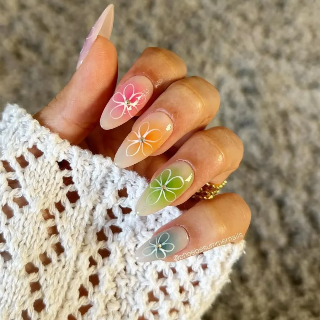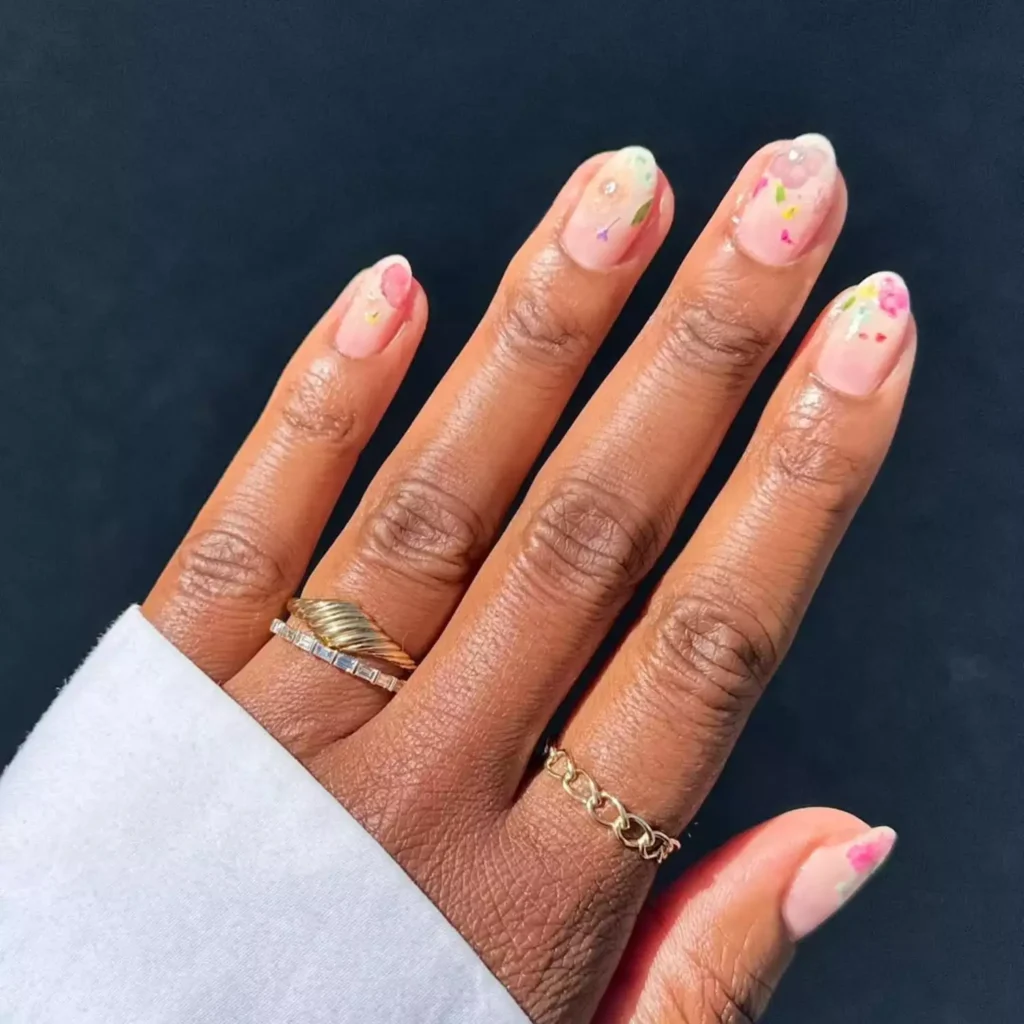 You can paint flowers on every nail or use them as accent details. For a modern twist, combine florals with a glossy top coat or subtle metallic accents for added dimension.