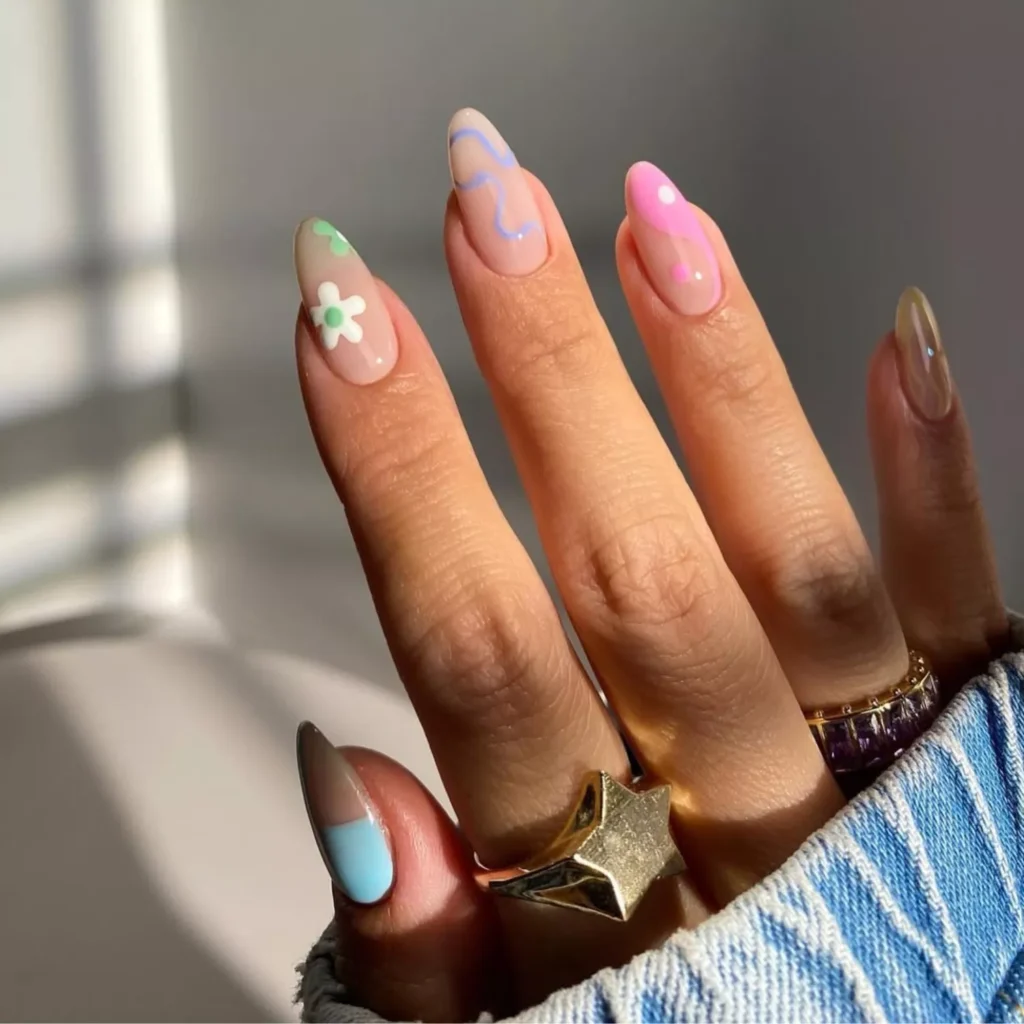 Nothing says spring quite like pastel nails. Light shades like baby pink, lilac, mint green, and sky blue make a gentle transition from winter into warmer months. These soft hues are elegant, universally flattering, and great for everyday wear.